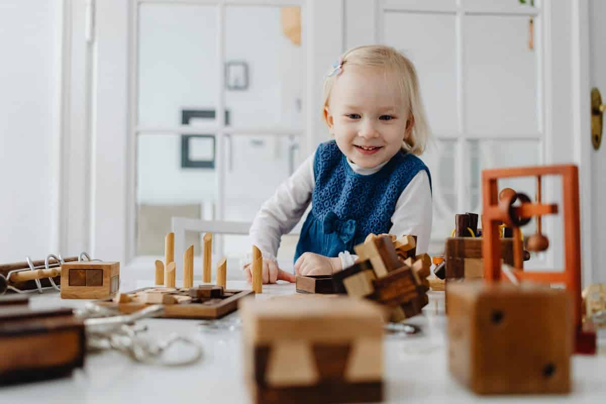 Ce qui marche bien à la maison : des jouets en bois costauds, des ballons souples, des livres cartonnés, quelques instruments de musique adaptés, un miroir incassable fixé en bas du mur. L’idée, c’est de proposer de la variété sans saturer. Un enfant face à trente jouets ne joue avec aucun. Je fais tourner par petits lots, ça relance l’intérêt sans rien acheter.
